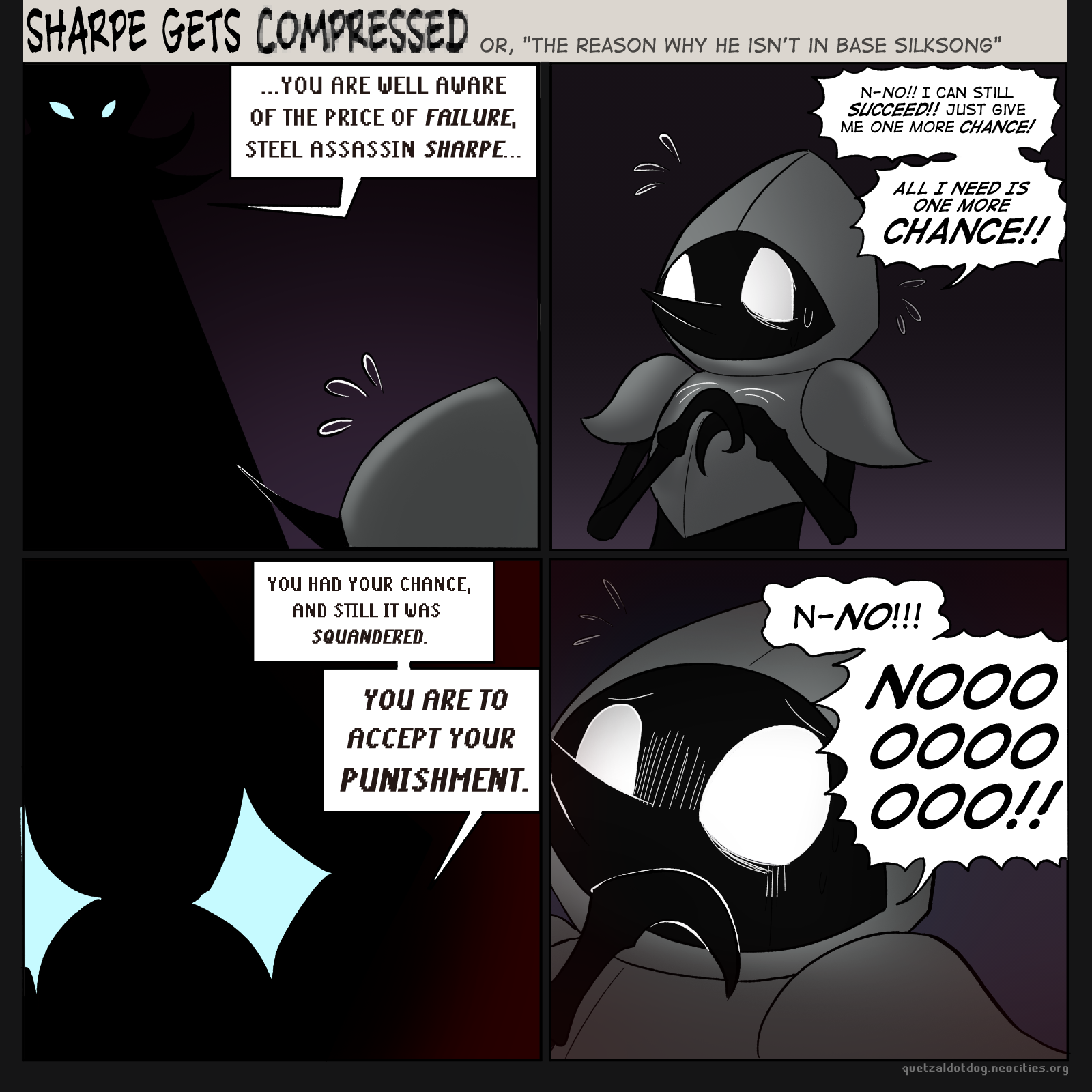as is the way with me, when i like something a lot, i make fanart and fancomics for it. hollow knight has meant a lot to me for a long time now [i started getting really into it in late 2018/early 2019...i remember the initial silksong announcement...fun times] and i'm happy to be at a skill point where i can make comics that aren't completely terrible.